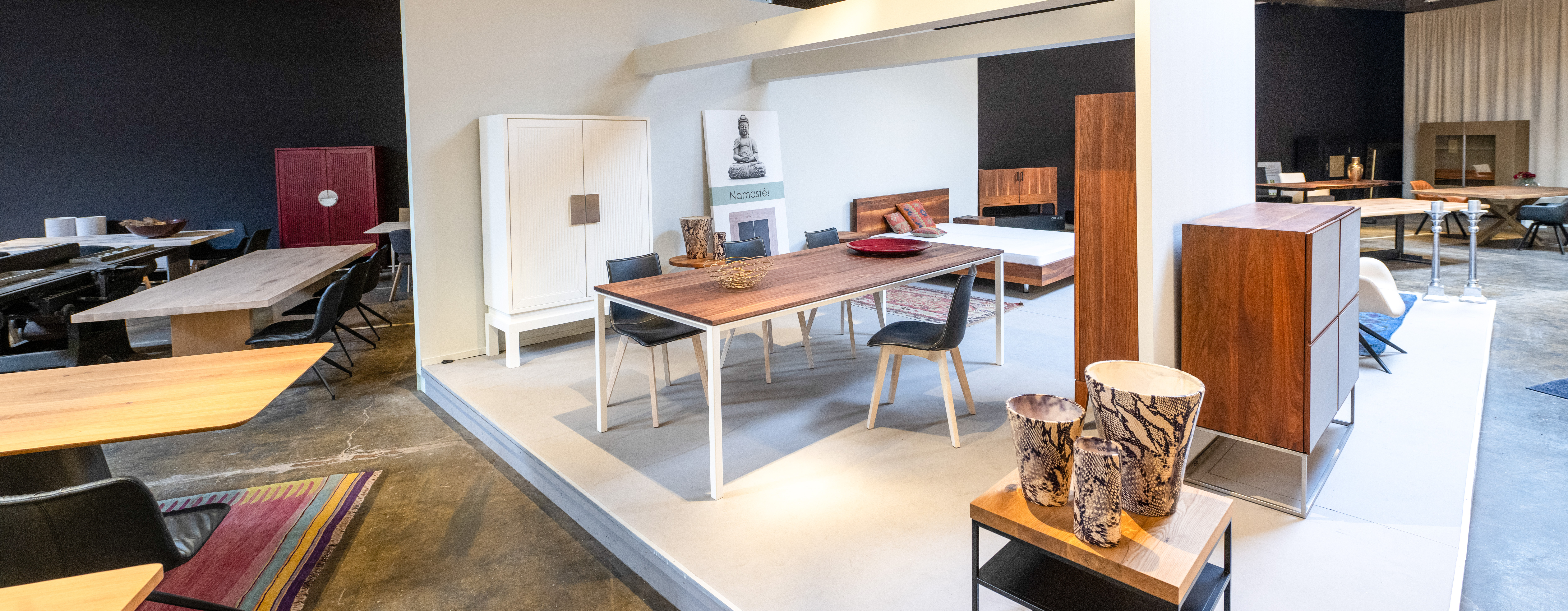 In unserem Showroom im Werk können Sie eine umfangreiche Beratung zur Fertigung und zum Kauf Ihres Traummöbels in Anspruch nehmen. Hier finden Sie die verschiedenen Produkte, Oberflächen, Holzarten und vieles mehr. Durch unsere liebevoll gestalteten Kojen, mit unterschiedlichsten Stilen, können Sie sich inspirieren lassen. So finden wir gemeinsam maßgeschneiderte Lösungen für Ihr individuelles Zuhause. Gerne laden wir Sie auch zu einem Rundgang durch unsere Produktion ein.